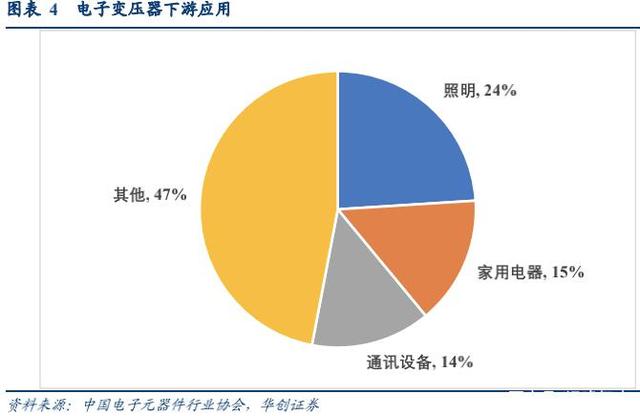 照明、家電為基,新能源、工控醫(yī)療、可穿戴驅(qū)動(dòng)電子變壓器發(fā)展。照明、家電是電子變壓器基礎(chǔ)應(yīng)用市場,占全球變壓器規(guī)模比例分別為 24%、15%。此外,通訊設(shè)備、移動(dòng)終端、計(jì)算機(jī)設(shè)備、工業(yè)、醫(yī)療設(shè)備、光伏等新能源均為電子變壓器重要下游應(yīng)用。未來幾年下游光伏儲能、新能源汽車及充電樁、工控醫(yī)療、通訊、可穿戴等快速發(fā)展,將成為拉動(dòng)電子變壓器市場增長的主要?jiǎng)恿Α?/span>