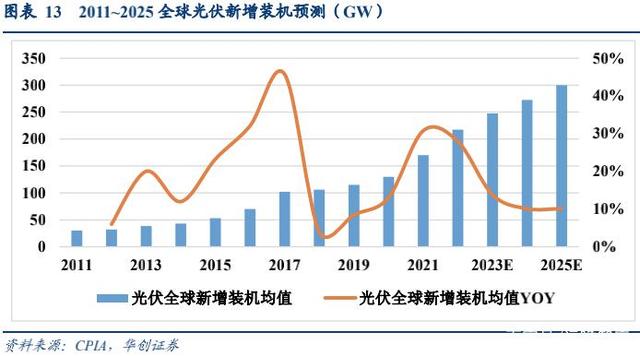 圖表 14 2011~2025 中國光伏新增裝機(jī)預(yù)測(GW)