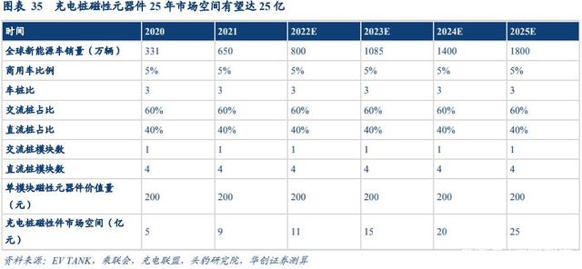 (二)預(yù)計(jì) 25 年車載&充電樁磁性元器件市場空間近百億