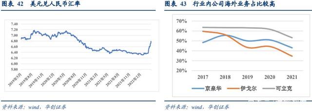 美元兌人民幣匯率從 2020 年 5 月份的 7.1 快速下行至 2021 年 2 月的 6.4 而后企穩(wěn),行業(yè)內(nèi)公司境外業(yè)務(wù)相對較高,匯率波動(dòng)對行業(yè)內(nèi)公司業(yè)績造成影響。
