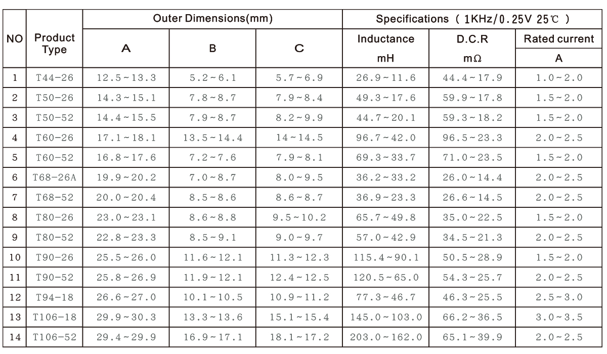 鐵粉芯電感磁芯它是由100%的鐵粉添加有機(jī)或無機(jī)粘合劑壓制而成,其偏置性能在所有粉末磁芯材料中最高,市場上通常稱之為Iron Powder 或鐵粉芯磁環(huán)。由于生產(chǎn)工藝較其他幾種簡單,原材料最便宜,且具有較好的磁性能,是四大系列金屬軟磁粉芯中使用量最大、最為廣泛的一種。從μe10的-2材質(zhì)鐵粉芯到μe75的-26、-52等各種材質(zhì)的鐵粉芯,適用于各種不同的使用場合。還有用鐵氧體摻入適量做的復(fù)合鐵粉芯,具有較高的導(dǎo)磁率,在某些使用場合可以彌補(bǔ)鐵粉芯導(dǎo)磁率較低的缺陷。