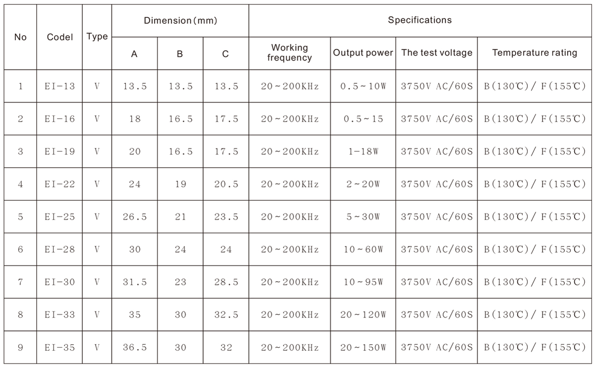 EI型高頻變壓器具有高的導(dǎo)磁率,高飽和的磁通密度和很小的損耗,特別是在100℃附近,功率損耗最小。