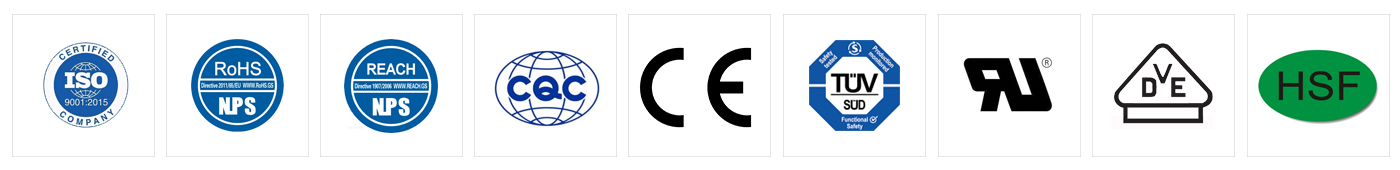 公司主要產(chǎn)品通過了UL、CCC、CCEE、CE、TUV-GS、VDE等國內(nèi)、國際認(rèn)證,并可按客戶的要求進(jìn)行設(shè)計定型。公司嚴(yán)格推行ISO質(zhì)量管理體系及RoHS指令過程管理體系,為產(chǎn)品質(zhì)量保證提供有力的支持。